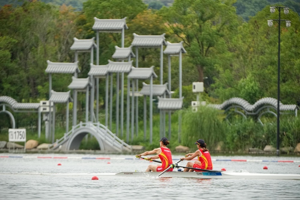 9月20日,杭州亞運會賽艇項目預(yù)賽比賽在浙江省杭州市富陽水上運動中心開賽。新華社記者 江漢 攝