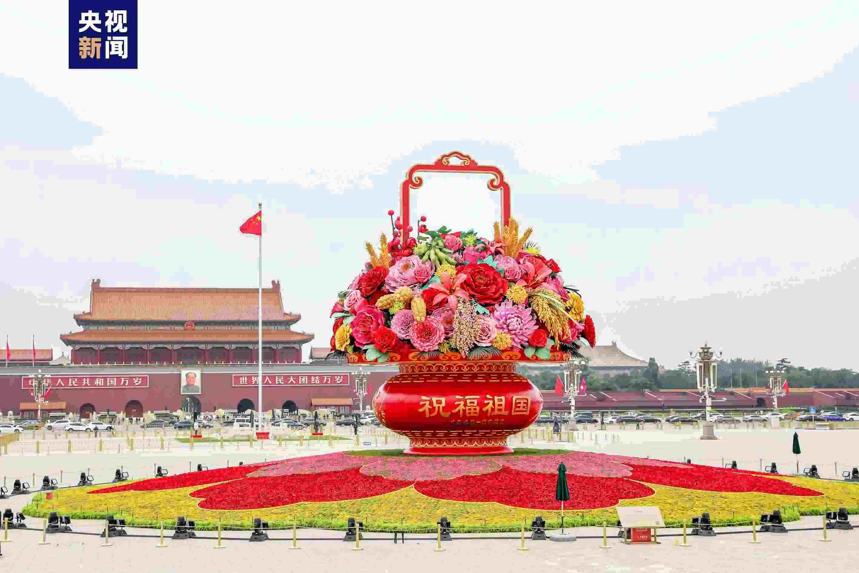 記者從北京市園林綠化局了解到,9月25日,“祝福祖國”巨型花籃亮相天安門廣場。長安街等重要區(qū)域綠化布置也同期完工。