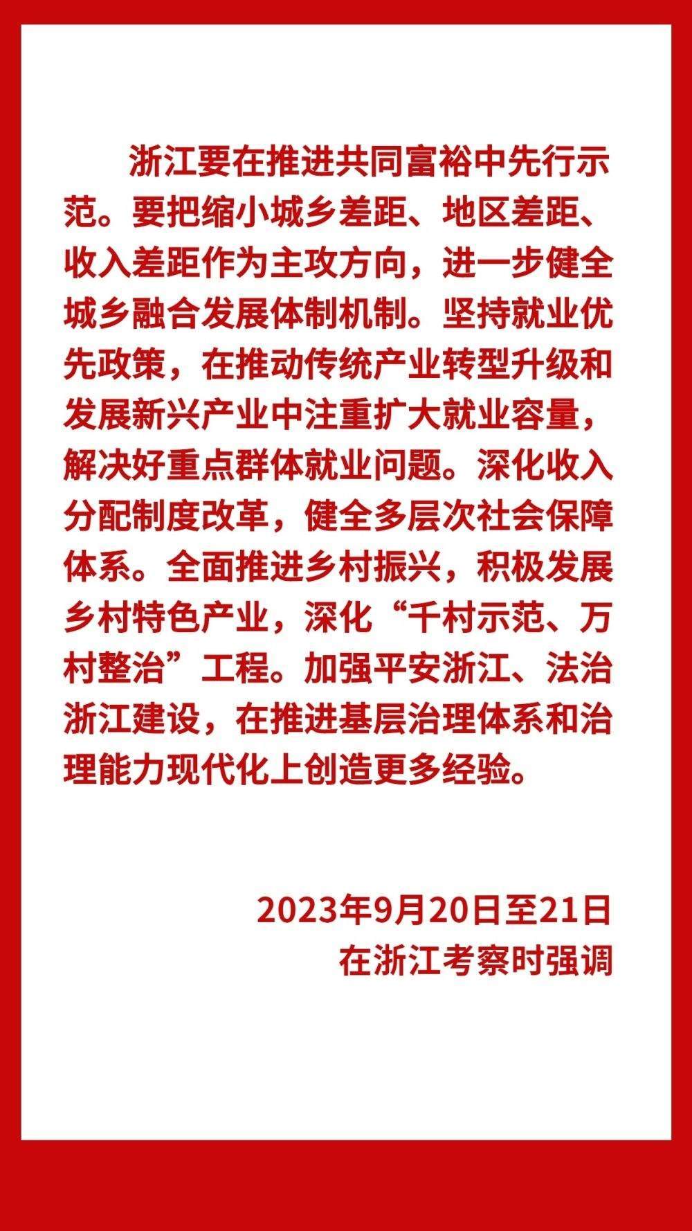9月20日至21日,中共中央總書記、國家主席、中央軍委主席習(xí)近平在浙江考察。20日上午,習(xí)近平來到金華市義烏市后宅街道李祖村考察調(diào)研,先后在村黨群服務(wù)中心、“共富市集”、扎染商鋪等場(chǎng)所了解李祖村發(fā)展變化情況。他說,李祖村扎實(shí)推進(jìn)共同富裕,是浙江“千萬工程”顯著成效的一個(gè)縮影,要再接再厲,在推動(dòng)鄉(xiāng)村振興上取得更大成績。鄉(xiāng)村振興潛力無限、大有可為,鄉(xiāng)親們要努力奮斗,一起奔向共同富裕的美好明天。