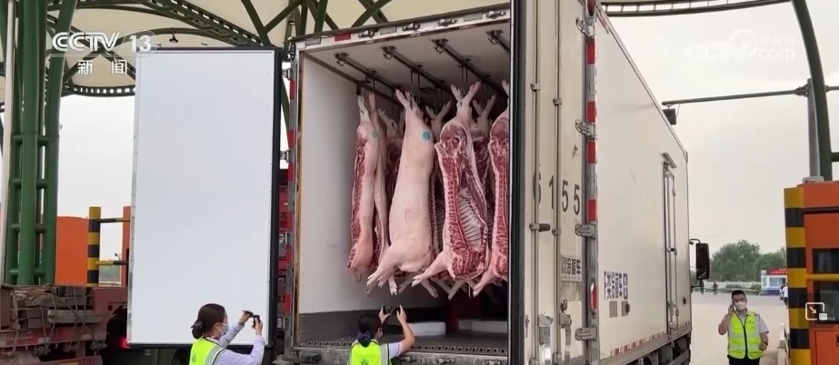 為了保障肉品質(zhì)量,在這家保供基地生豬屠宰后,會馬上進(jìn)入預(yù)冷車間,預(yù)冷2小時(shí)之后再轉(zhuǎn)運(yùn)到冷鏈車上,運(yùn)輸全程制冷。另外,當(dāng)?shù)卣瓦\(yùn)管部門也同步強(qiáng)化服務(wù),在檢疫、運(yùn)輸、轉(zhuǎn)運(yùn)等多個環(huán)節(jié)提供便利。