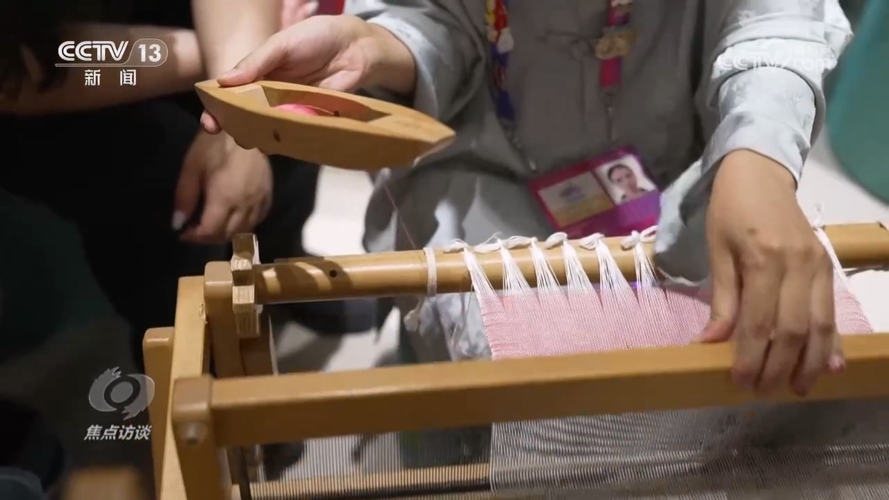這只備受運動員喜愛的“加油鴨”,它身上披著的土布,可是有著數(shù)千年的歷史。土布以純棉為原料,用紡車、木織布機一梭一梭精心編織而成,而把它們作為中秋禮物,送給來自外國的朋友們,并讓他們親手參與制作,既展示中華文化之美,也增加各國運動員們對中國文化的了解。