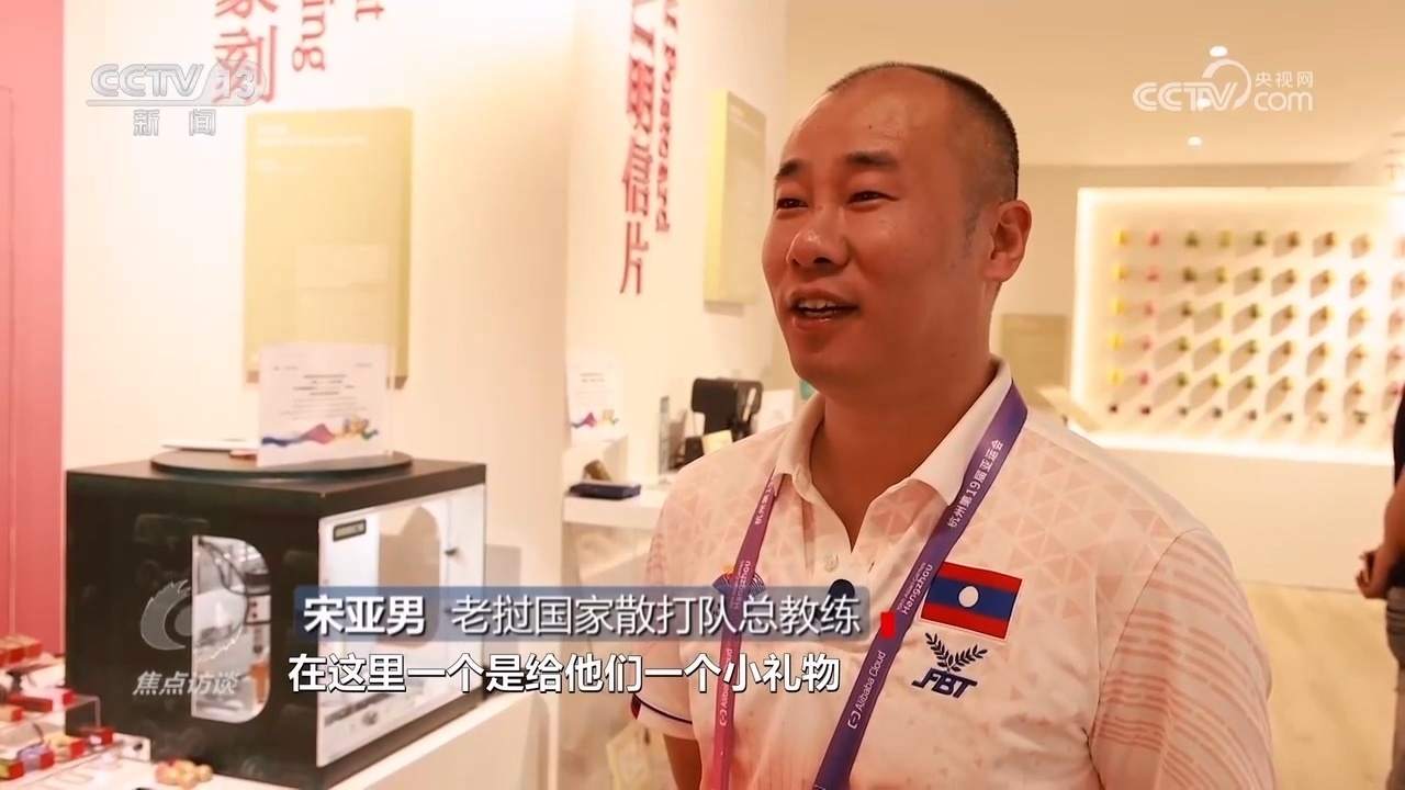 宋亞男:“因為他們是在中國杭州參加亞運會,沒有在家里跟家人團圓,給他們一個小禮物,想讓他們感受在這邊過中秋節(jié)的氛圍,我們在這里帶他們團圓過節(jié)?!?/p>