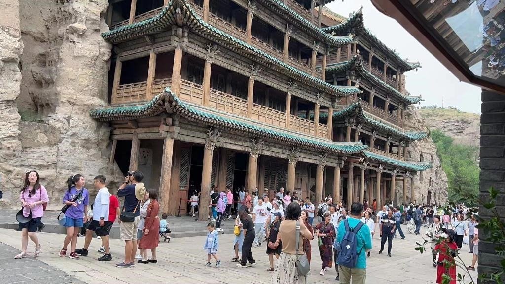 7月4日,游客在山西省大同市云岡石窟景區(qū)內(nèi)參觀。新華社記者 解園 攝