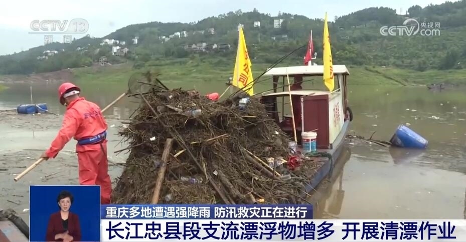 近段時(shí)間,重慶的強(qiáng)降雨天氣還導(dǎo)致長(zhǎng)江重慶忠縣段各支流漂浮物增多。目前,多艘清漂船來回穿梭在江面上,分區(qū)域開展清漂作業(yè),清漂工人將江面漂浮物一一打撈上船,轉(zhuǎn)運(yùn)上岸后再進(jìn)行集中處理。7月3日以來,忠縣累計(jì)出動(dòng)人工打撈船次80余船次,累計(jì)打撈垃圾約400余噸。此外,此輪長(zhǎng)江洪峰過境忠縣后,長(zhǎng)江忠縣段水位迎來上漲,當(dāng)?shù)叵嚓P(guān)部門正密切關(guān)注水位變化。