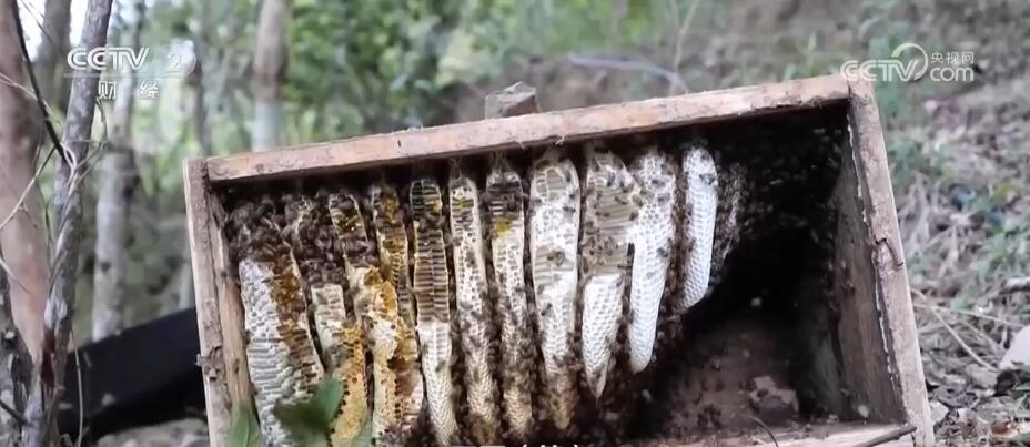 在廣西隆林各族自治縣金鐘山鄉(xiāng)弄八村養(yǎng)蜂基地記者看到,郁郁蔥蔥的森林里蜂箱錯落有致,成群的蜜蜂交織飛舞,蜂農(nóng)正戴著防蜂帽收割蜂蜜。