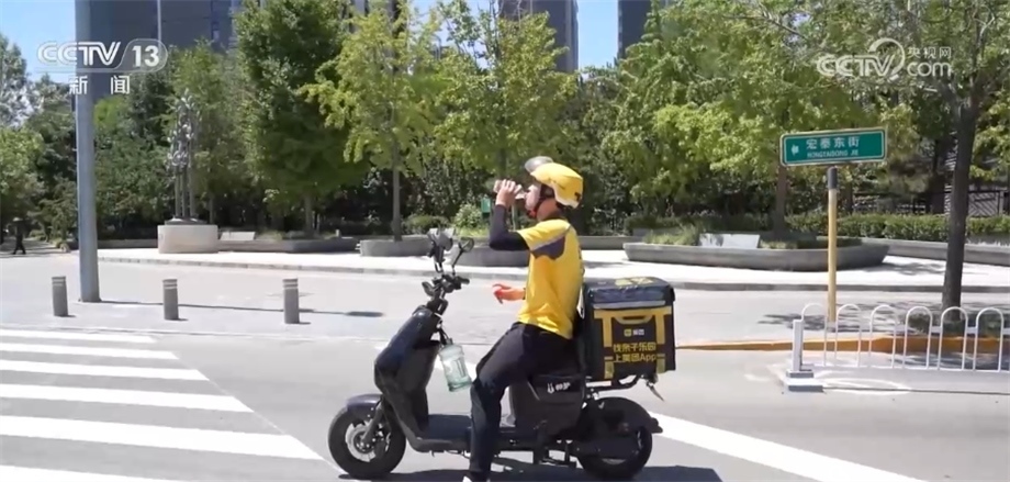 某快遞平臺北京金地營業(yè)部負(fù)責(zé)人 萬建波:十二點(diǎn)到(下午)兩點(diǎn)是全天最熱的時(shí)候,我們會避開這個(gè)時(shí)間段,這樣小哥能得到充足的休息,也能將商品及時(shí)送達(dá)。