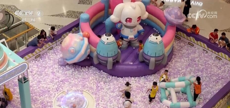上海某商場(chǎng)運(yùn)營(yíng)經(jīng)理 趙佳麗:我們會(huì)在暑假檔的時(shí)候,在中庭引入一些比較熱門(mén)的IP(知識(shí)產(chǎn)權(quán))游玩設(shè)施。另外,因?yàn)槿龢鞘莾和瘶I(yè)態(tài),所以全年都會(huì)安排一些固定的互動(dòng)點(diǎn)來(lái)供周邊的家庭游玩。