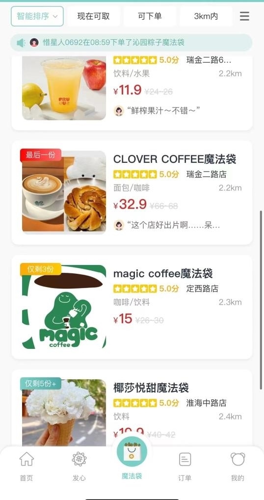 記者在上海登錄一個“盲盒”小程序,看到所在地周邊的部分商戶銷售一批名為“魔法袋”的產(chǎn)品,已經(jīng)吸引多個餐飲品牌加入。平均售價只有十幾元的“食物盲盒”,包含了多個烘焙產(chǎn)品。記者隨機選購了一款“魔法袋”,到店取貨后看到,售價11.9元的“魔法袋”里有4個蛋撻、2個肉松蛋糕。如果按照原價購買,這些東西應該需要20多元。