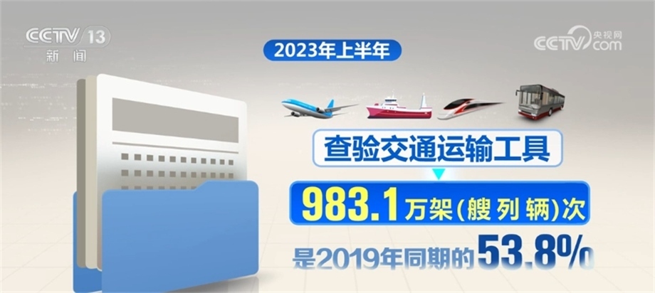 據(jù)國家移民管理局統(tǒng)計(jì),2023年上半年,全國移民管理機(jī)構(gòu)共查驗(yàn)出入境人員1.68億人次,是2019年同期的48.8%,其中內(nèi)地居民8027.6萬人次,港澳臺(tái)居民7490.3萬人次,外國人843.8萬人次(不含邊民);查驗(yàn)交通運(yùn)輸工具983.1萬架(艘、列、輛)次,是2019年同期的53.8%,其中,飛機(jī)20.4萬架次、船舶19.1萬艘次、火車4.4萬列次、汽車939.2萬輛次。
