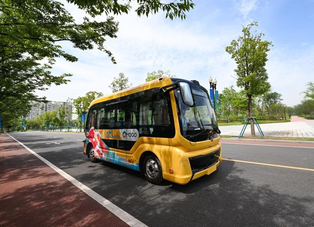 搭載“車路云一體化”系統(tǒng)的自動駕駛巴士