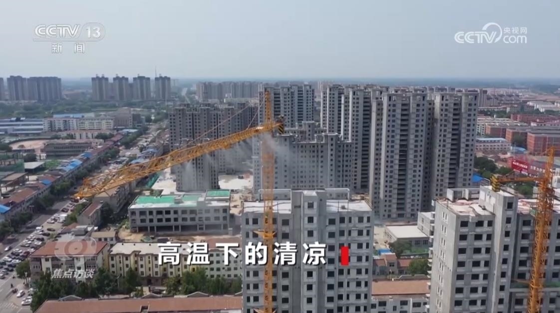 為了保護高溫下堅守崗位的工作人員,還有很多地方主動采取各種防暑降溫措施。在山東平原縣,當?shù)卦?7個建筑工地上安裝了“智慧噴霧降溫系統(tǒng)”,實時監(jiān)控溫度和粉塵,一旦達到預警值,立刻開啟噴淋。兩小時后,溫度可由34℃降至29℃,PM10由每立方米35微克降至22微克。