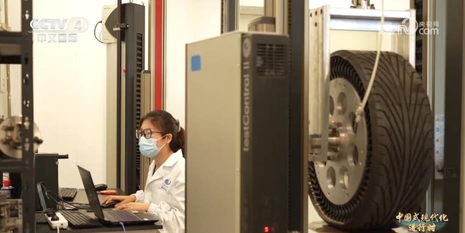總臺央視記者 宋達:位于廣州黃埔的航空輪胎大科學(xué)中心是中國第一家航空輪胎動力學(xué)大科學(xué)裝置。目前,裝置設(shè)備已經(jīng)基本安裝完畢,主要包括高加速試驗臺、高性能輪胎地面環(huán)境模擬試驗臺等裝置,可以滿足大飛機各類性能測試。國產(chǎn)民用航空輪胎看似普通,卻與高端芯片、光刻機等高科技一同列入科研任務(wù)清單,成為中國急需解決的“卡脖子”難題。