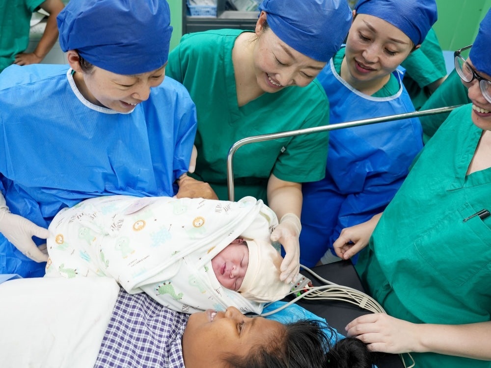 中國(guó)海軍“和平方舟”號(hào)醫(yī)院船在基里巴斯為29歲的塔拉瓦居民德阿瑞接生了一名“和平寶寶”(2023年7月16日攝)。新華社發(fā)(劉偉 攝)