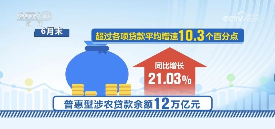 上半年,涉農(nóng)貸款余額也保持較快增長。6月末,全國涉農(nóng)貸款余額54.64萬億元,同比增長16.0%。其中,普惠型涉農(nóng)貸款余額12萬億元,同比增長21.03%,超過各項貸款平均增速10.3個百分點。