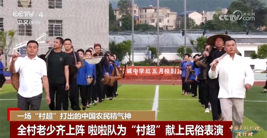 央視網(wǎng)消息:黨的二十大報(bào)告指出,中國式現(xiàn)代化是物質(zhì)文明和精神文明相協(xié)調(diào)的現(xiàn)代化。在廣大農(nóng)村地區(qū),農(nóng)民精神文化生活狀況是鄉(xiāng)村振興乃至經(jīng)濟(jì)社會(huì)發(fā)展全局的重要衡量指標(biāo)。近年來,“土味”十足的“村BA”“村超”等農(nóng)民自發(fā)舉行的體育賽事火爆全網(wǎng)。正在貴州榕江舉行的“村超”本周六(7月29日)將迎來總決賽,今天的系列節(jié)目《中國式現(xiàn)代化進(jìn)行時(shí)》,我們跟隨記者的鏡頭去看看“村超”的比賽盛況。