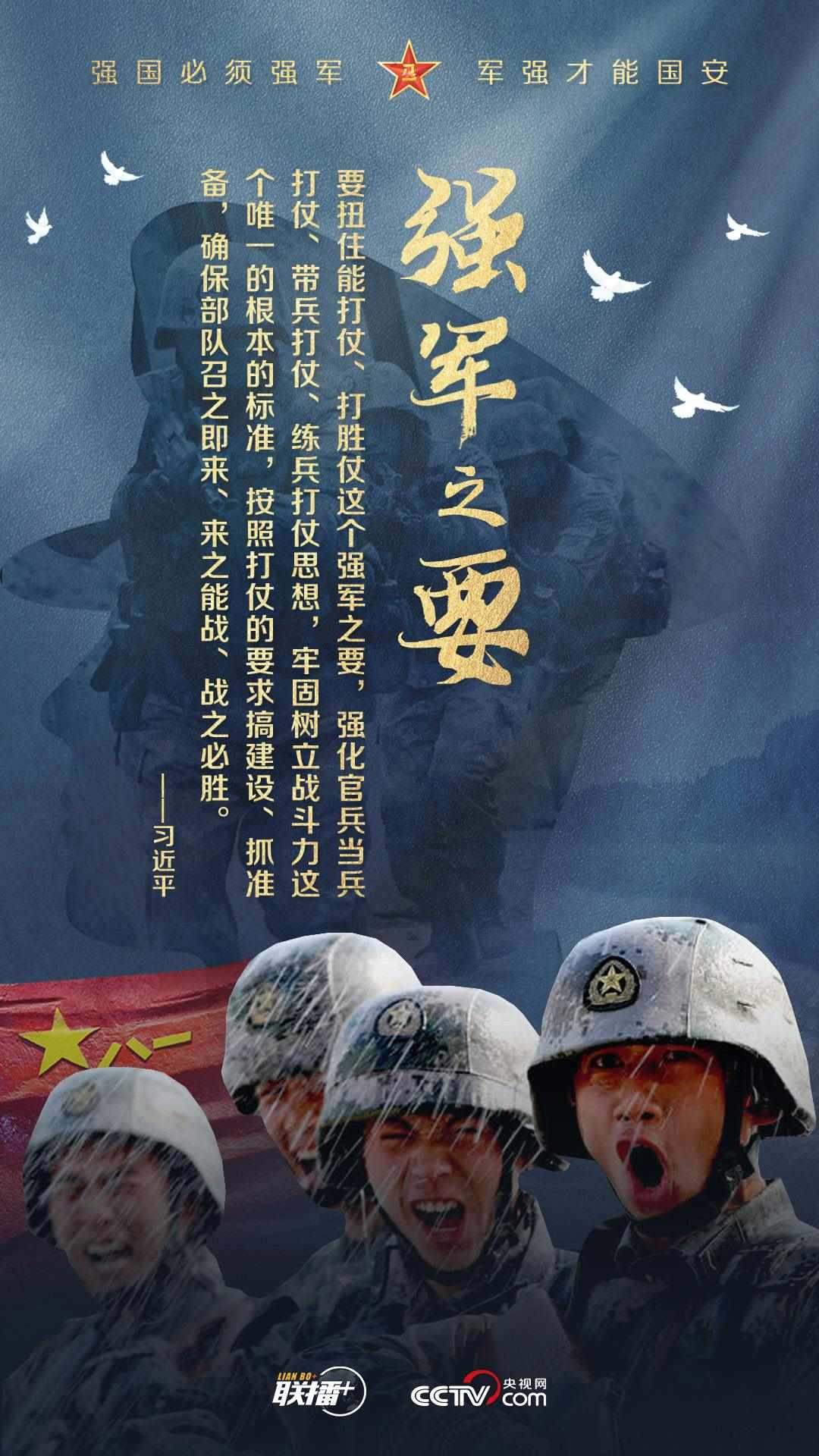 黨的十八大以來,習近平主席始終高度重視國防和軍隊建設(shè),為全軍擘畫強軍興軍藍圖、指引奮進方向。值此中國人民解放軍建軍96周年之際,央視網(wǎng)《聯(lián)播+》欄目制作強軍海報,與您一起學習習主席的強軍思想。