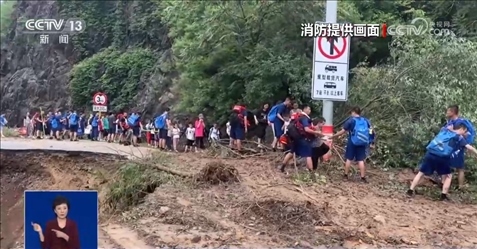 8月2日上午,現場總指揮決定護送自愿離開的被困群眾進行撤離。在撤離的隊伍中,有38名來自新疆參加北京游學的孩子,他們最小的6歲,平均年齡也只有8歲。為了保障轉移時的安全,撤離線路選擇了相對安全的盤山公路進行。途中經過落石塌方險區(qū)的時候,消防員們依次排開,在斷崖旁形成人墻,用身體筑起一條防線。遇到水流,消防員們把孩子們抱著傳遞到安全位置再繼續(xù)前行。