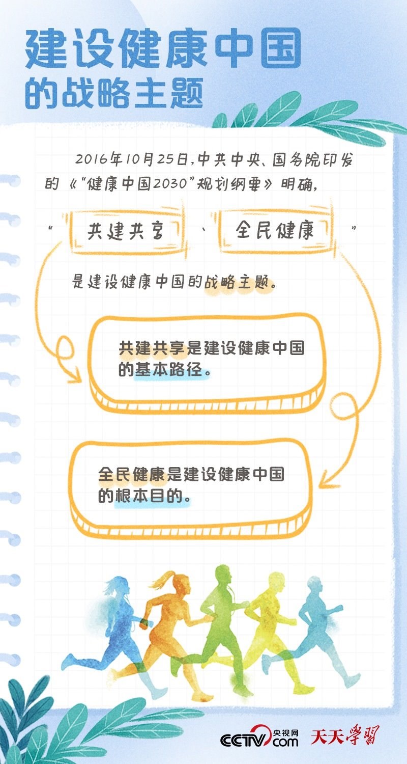 黨的二十大報告將“建成健康中國”作為到2035年我國發(fā)展的總體目標(biāo)之一,并指出,人民健康是民族昌盛和國家強(qiáng)盛的重要標(biāo)志,把保障人民健康放在優(yōu)先發(fā)展的戰(zhàn)略位置,完善人民健康促進(jìn)政策。什么是健康中國?如何全面推進(jìn)健康中國建設(shè)?央視網(wǎng)《天天學(xué)習(xí)·學(xué)習(xí)筆記》特梳理相關(guān)內(nèi)容,為您解讀總書記治國理政關(guān)鍵詞——健康中國。