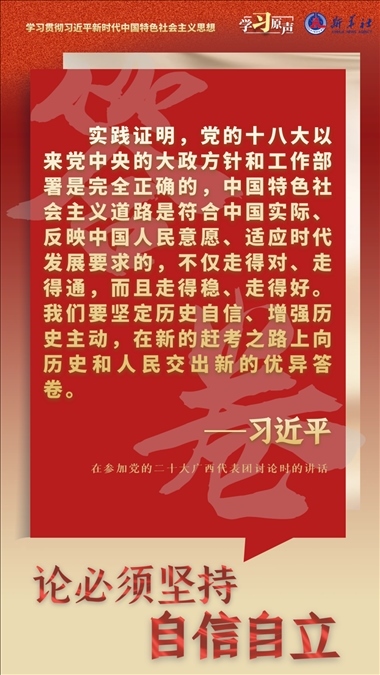 中國(guó)人民和中華民族從近代以后的深重苦難走向偉大復(fù)興的光明前景,從來(lái)就沒(méi)有教科書,更沒(méi)有現(xiàn)成答案。黨的百年奮斗成功道路是黨領(lǐng)導(dǎo)人民獨(dú)立自主探索開(kāi)辟出來(lái)的,馬克思主義的中國(guó)篇章是中國(guó)共產(chǎn)黨人依靠自身力量實(shí)踐出來(lái)的,貫穿其中的一個(gè)基本點(diǎn)就是中國(guó)的問(wèn)題必須從中國(guó)基本國(guó)情出發(fā),由中國(guó)人自己來(lái)解答。我們要堅(jiān)持對(duì)馬克思主義的堅(jiān)定信仰、對(duì)中國(guó)特色社會(huì)主義的堅(jiān)定信念,堅(jiān)定道路自信、理論自信、制度自信、文化自信,以更加積極的歷史擔(dān)當(dāng)和創(chuàng)造精神為發(fā)展馬克思主義作出新的貢獻(xiàn),既不能刻舟求劍、封閉僵化,也不能照抄照搬、食洋不化。