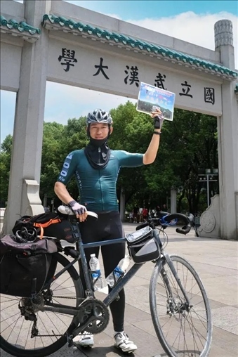 2023年是云南昆明小伙文迪與武漢大學(xué)相遇的年份,2023公里是文迪的家鄉(xiāng)到武大的距離?!斑@是我一直以來的夢想”文迪說,在初中時,他讀到大學(xué)新生騎行報到的故事,從此下定決心,未來考上大學(xué)后“考到哪里,就騎到哪里”。今年高考,文迪被武大資源與環(huán)境科學(xué)學(xué)院空間信息與國土資源專業(yè)錄取,從云貴高原到荊楚大地,文迪一路騎行,來了一場特別的新生報到之旅!8月21日,這場既是旅游又是“流浪”的旅途終于結(jié)束,文迪也來到了珞珈山下,即將在這座最美大學(xué)校園里開始四年的大學(xué)生活。
