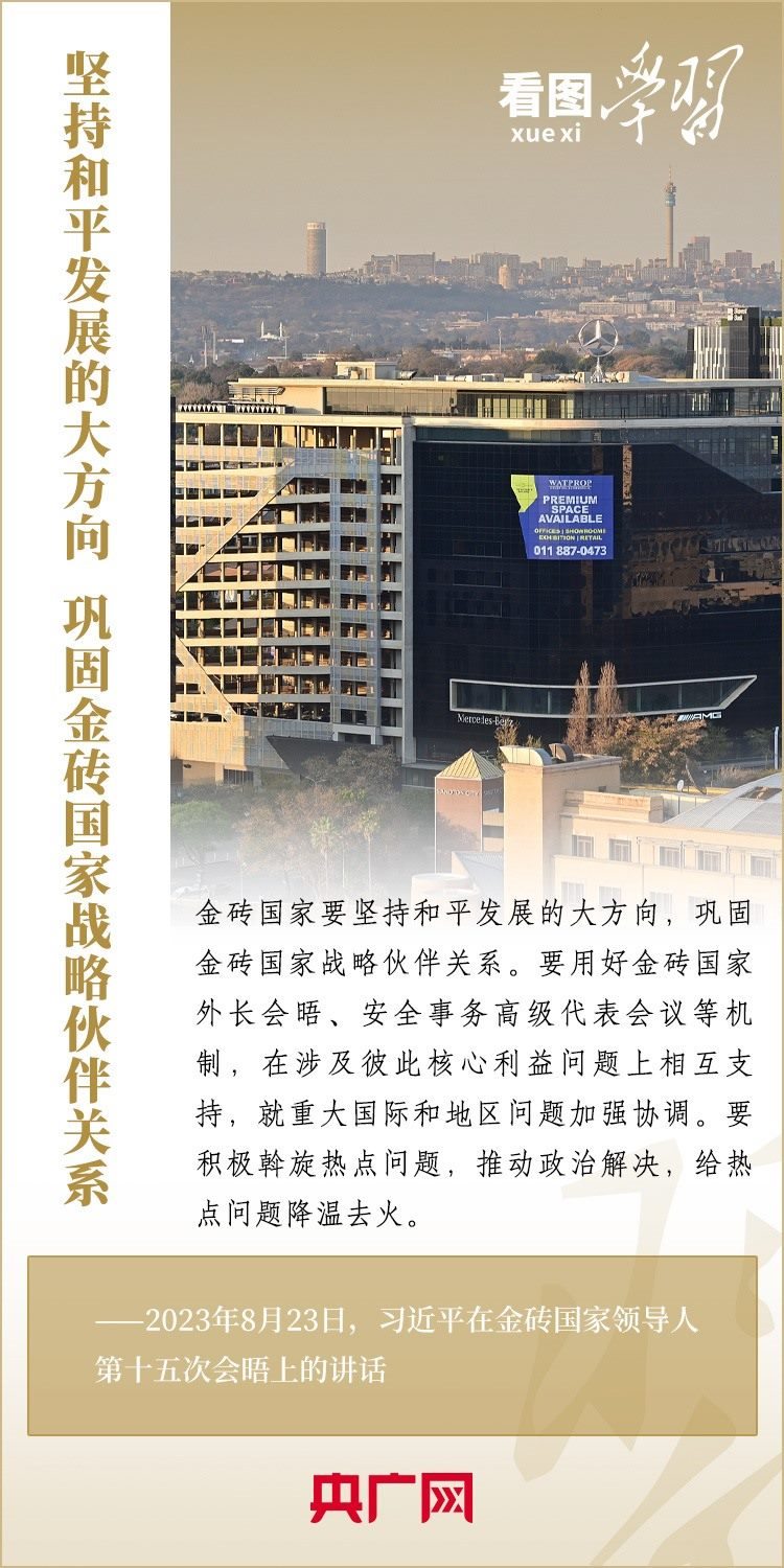 當(dāng)?shù)貢r(shí)間8月23日,習(xí)近平主席出席金磚國家領(lǐng)導(dǎo)人第十五次會(huì)晤并發(fā)表重要講話,強(qiáng)調(diào)金磚國家要秉持開放包容、合作共贏的金磚精神,以金磚責(zé)任應(yīng)對(duì)共同挑戰(zhàn),以金磚擔(dān)當(dāng)開創(chuàng)美好未來。一起來學(xué)習(xí)!