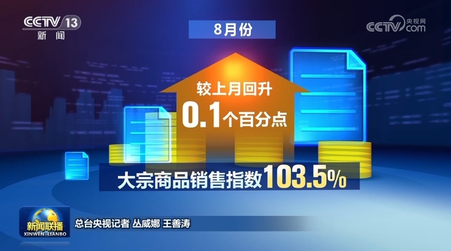 另外, 8月份大宗商品銷(xiāo)售指數(shù)為103.5%,較上月回升0.1個(gè)百分點(diǎn),終端市場(chǎng)及貿(mào)易商的采購(gòu)意愿有所增強(qiáng),市場(chǎng)需求整體向好。