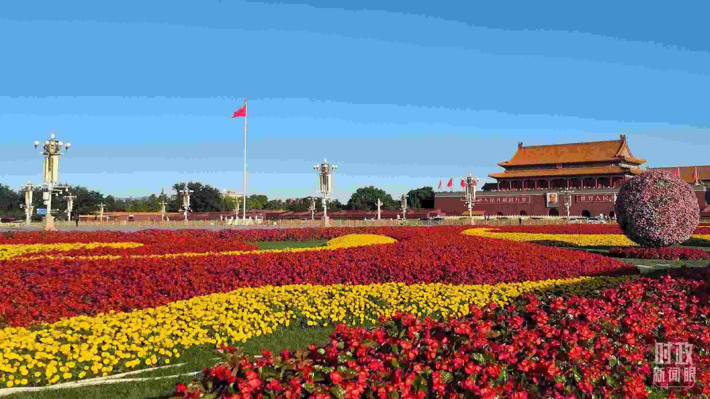 △天安門廣場,花團(tuán)錦簇。(總臺(tái)央視記者韓銳拍攝)