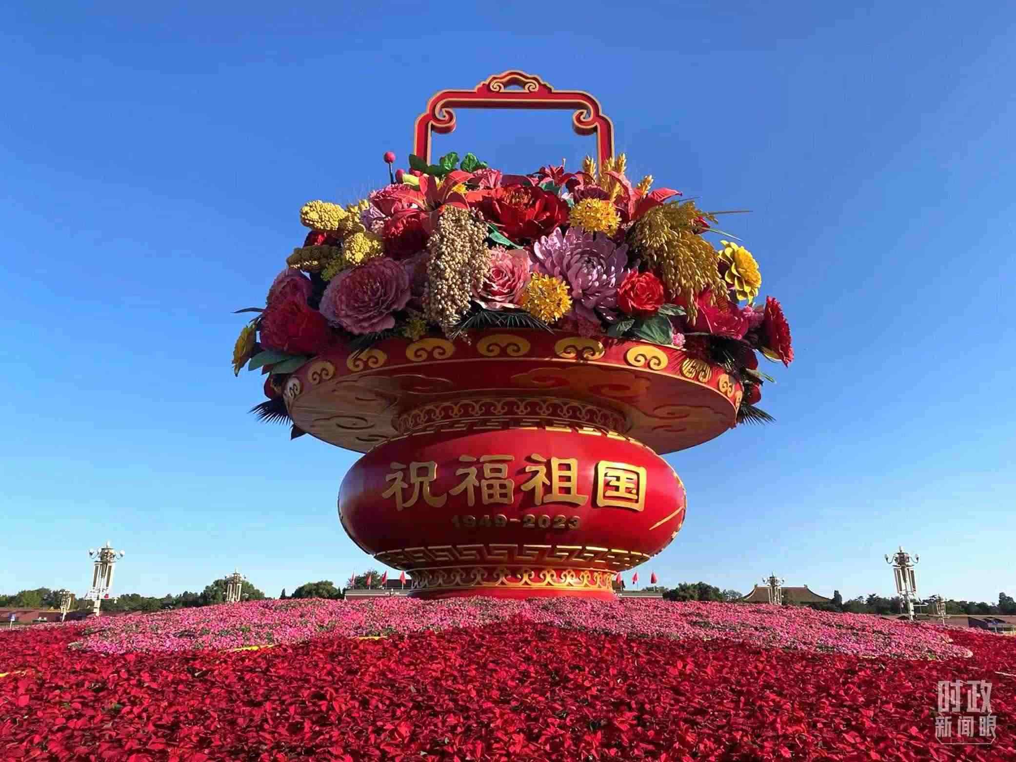 △“祝福祖國”巨型花籃。(總臺(tái)央視記者曹亞星拍攝)