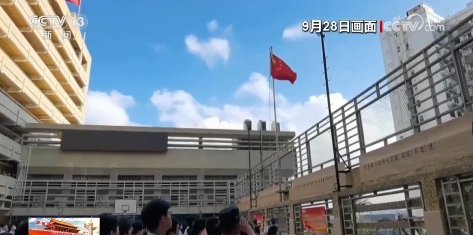 央視網(wǎng)消息:為慶祝中華人民共和國成立74周年,9月28日,香港培僑中學(xué)邀請解放軍駐香港部隊(duì)三軍儀仗隊(duì)來校為全體師生舉行升國旗儀式。培僑中學(xué)是新中國成立后首批升起五星紅旗的香港學(xué)校之一,從那時(shí)起,升國旗的儀式在培僑中學(xué)代代相傳,迄今已經(jīng)延續(xù)了74年。