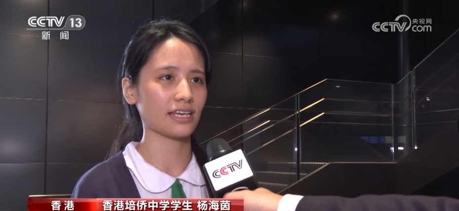 香港培僑中學(xué)學(xué)生 楊海茵:我們的國家現(xiàn)在非常繁榮昌盛,我們也身處在一個(gè)非常和平的環(huán)境中,為我們的國家感到非常自豪。(我們要)做一個(gè)對香港、對社會(huì)、對國家有貢獻(xiàn)的人。