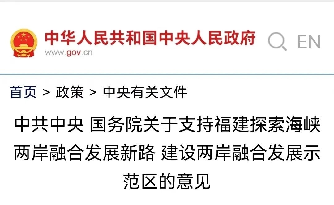 上面這份《意見》也提到了大陸連接臺灣的支點,距離臺灣最近的地方,福建。