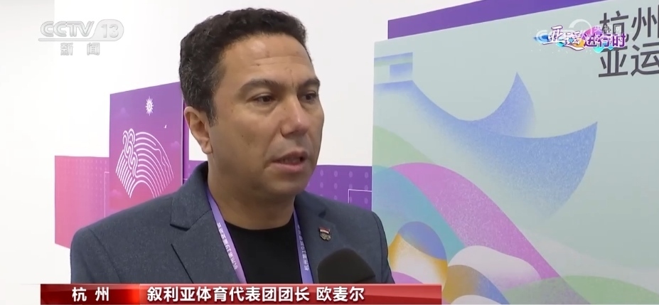 敘利亞運(yùn)動(dòng)員 艾哈邁德·古松:今年已經(jīng)是我第三次來中國(guó)比賽了。當(dāng)我走在街上,我可以看到很多人向我問好,歡迎你來到這里。而且一旦我們需要幫助,很多人都來為我們提供幫助。來到這里就像回家一樣。而且哪里都是那么干凈美麗,場(chǎng)館也是我見過的最棒的場(chǎng)館,謝謝中國(guó)給亞洲帶來了一場(chǎng)如此精彩的亞運(yùn)會(huì)。