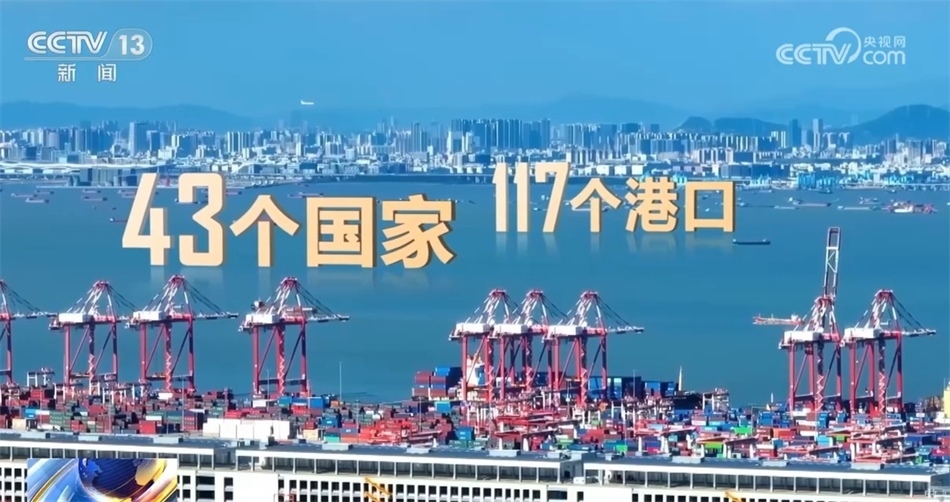 向大海,這是2013年時(shí)中國與共建“一帶一路”國家間的水運(yùn)航線。十年間,共建“一帶一路”國家間的水運(yùn)航線數(shù)量翻了一番,新增航線達(dá)到了1344條,穿梭其中的貨船增加150%?!敖z路海運(yùn)”航線已通達(dá)全球43個(gè)國家的117個(gè)港口,織出了一張聯(lián)通世界的貿(mào)易流動(dòng)網(wǎng)絡(luò)。