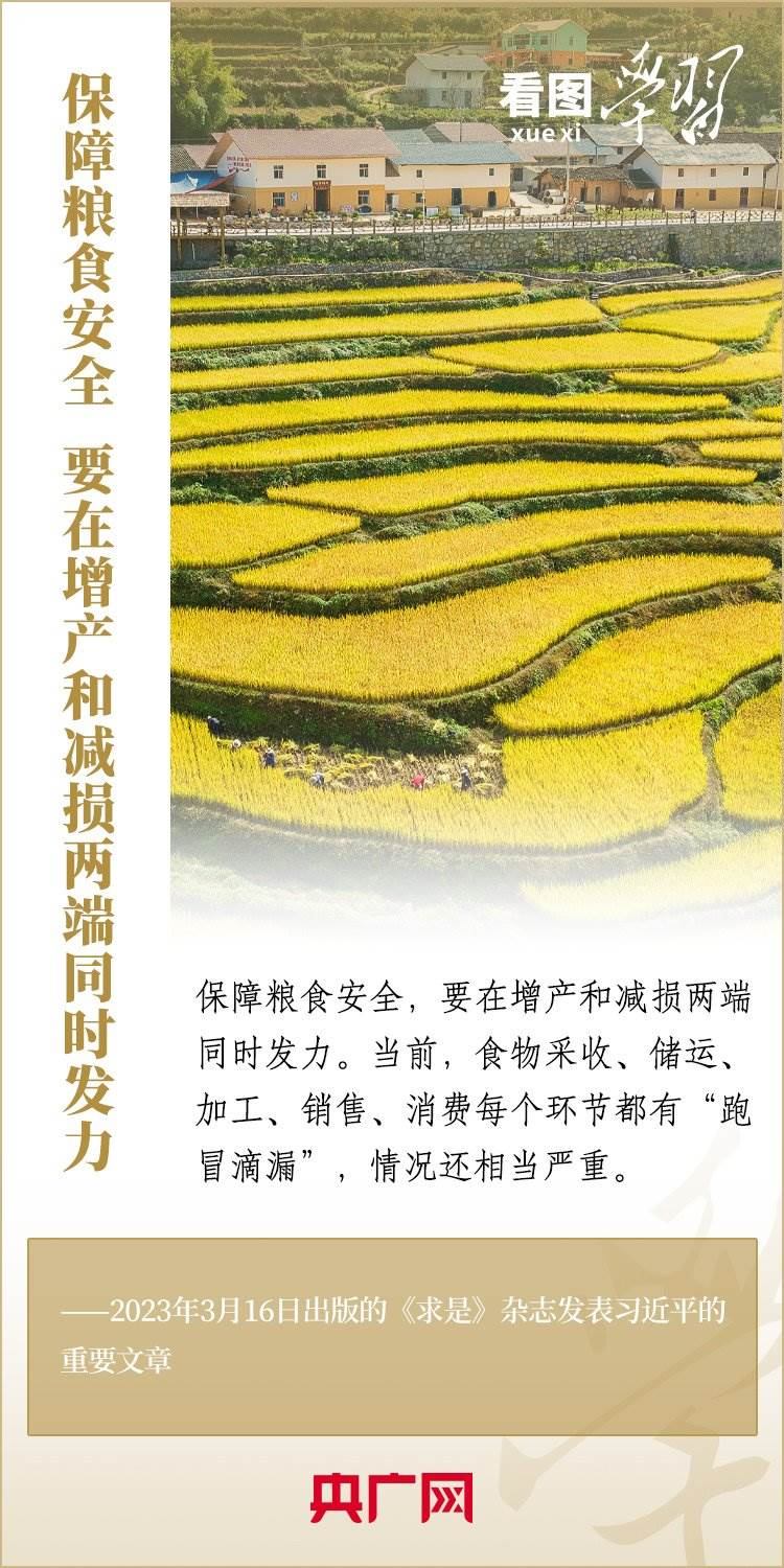 糧食安全是“國(guó)之大者”。黨的十八大以來(lái),習(xí)近平總書(shū)記在地方考察調(diào)研期間,常常走進(jìn)田間地頭,看長(zhǎng)勢(shì)、問(wèn)收成,多次強(qiáng)調(diào)“中國(guó)人的飯碗任何時(shí)候都要牢牢端在自己手中”,“保障糧食安全,要在增產(chǎn)和減損兩端同時(shí)發(fā)力”。讓14億多人吃飽吃好,總書(shū)記始終念茲在茲。今天是世界糧食日,一起來(lái)學(xué)習(xí)!