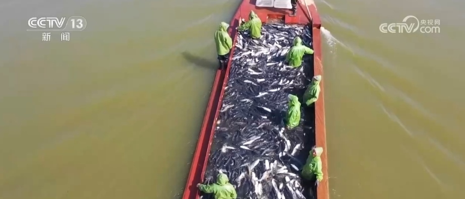 據(jù)了解,大明湖水域面積達到12.8萬畝,是江西第二大的內(nèi)陸湖泊,十分適合發(fā)展水產(chǎn)養(yǎng)殖。養(yǎng)殖的品種以青魚、草魚、鰱魚、鳙魚“四大家魚”為主。秋捕開始時,漁業(yè)工人用特制的漁網(wǎng)將魚兒驅(qū)趕到特制的長條通道里,再逐步收起漁網(wǎng),工人們在另一端仔細挑選活魚的品種和大小,體型不達標的魚會被挑出來,放回湖中繼續(xù)養(yǎng)。據(jù)現(xiàn)場工人介紹,2023年因為風(fēng)調(diào)雨順,大明湖迎來一個豐收年,捕獲上來的活魚一般都在4斤以上,全年總產(chǎn)量預(yù)計超過200萬公斤。