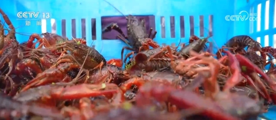 小龍蝦從一季豐收變成四季豐收,得益于規(guī)?;藴驶?、智能化養(yǎng)殖。在大棚里,低空盤旋的無人機正進行飼料投喂,基地還對環(huán)境指標進行在線監(jiān)測,實時掌握小龍蝦生長狀況。