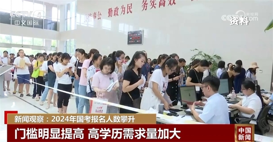 央視網(wǎng)消息:統(tǒng)計(jì)數(shù)據(jù)顯示,2024年國(guó)考報(bào)名人數(shù)逐漸攀升。截至10月22日16時(shí),1744711人提交報(bào)名申請(qǐng),比去年同期增加22萬(wàn)余人,其中1390420人通過(guò)審核。目前,平均競(jìng)爭(zhēng)比為35比1,略高于去年同期競(jìng)爭(zhēng)水平。