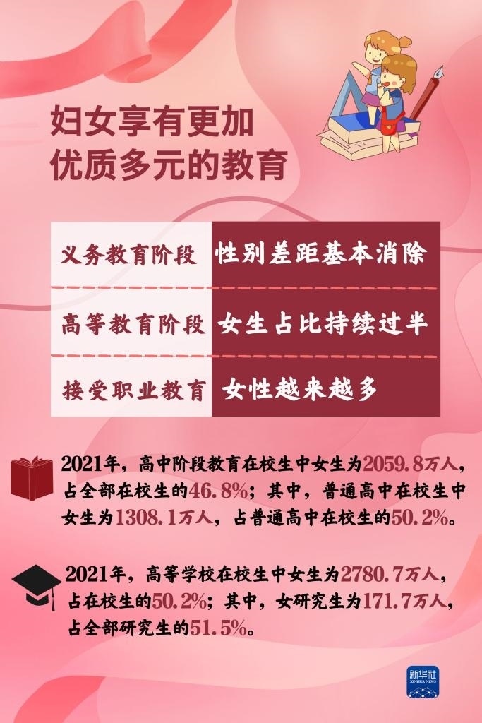 黨的十八大以來(lái),黨對(duì)婦女兒童工作的領(lǐng)導(dǎo)全面加強(qiáng),婦女參與經(jīng)濟(jì)發(fā)展的舞臺(tái)更為廣闊,參與決策和管理更加廣泛深入,享有更加優(yōu)質(zhì)更加多元的教育……新時(shí)代我國(guó)婦女事業(yè)取得了歷史性成就,發(fā)生歷史性變革。