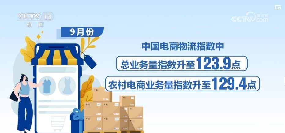 數(shù)據(jù)顯示,今年前三季度,線上電商物流保持旺盛活力,特別是進入9月份,農(nóng)村以及全領(lǐng)域電商物流需求穩(wěn)步回升。9月份,中國電商物流指數(shù)中的總業(yè)務量指數(shù)、農(nóng)村電商業(yè)務量指數(shù)分別升至123.9點、129.4點的年內(nèi)較高水平。