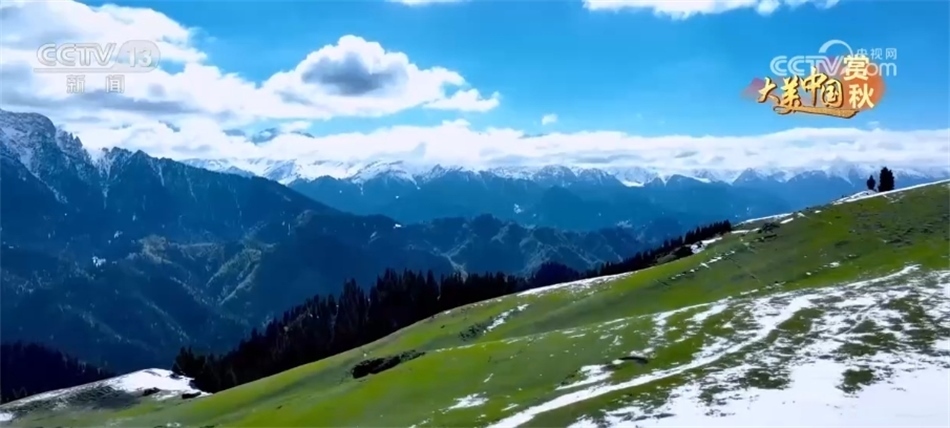 現(xiàn)在我們來到新疆昌吉木壘縣南部山區(qū),這兩天的降雪為秋日里的天山增添了別樣的色彩。群山巍峨聳立,松林蒼翠欲滴,冰峰雪嶺在氤氳云霧中若隱若現(xiàn)。雪的瑞白遇到山間的翠綠,也難掩這里的一派生機,素雅恢宏中盡顯高山牧場的唯美壯麗。