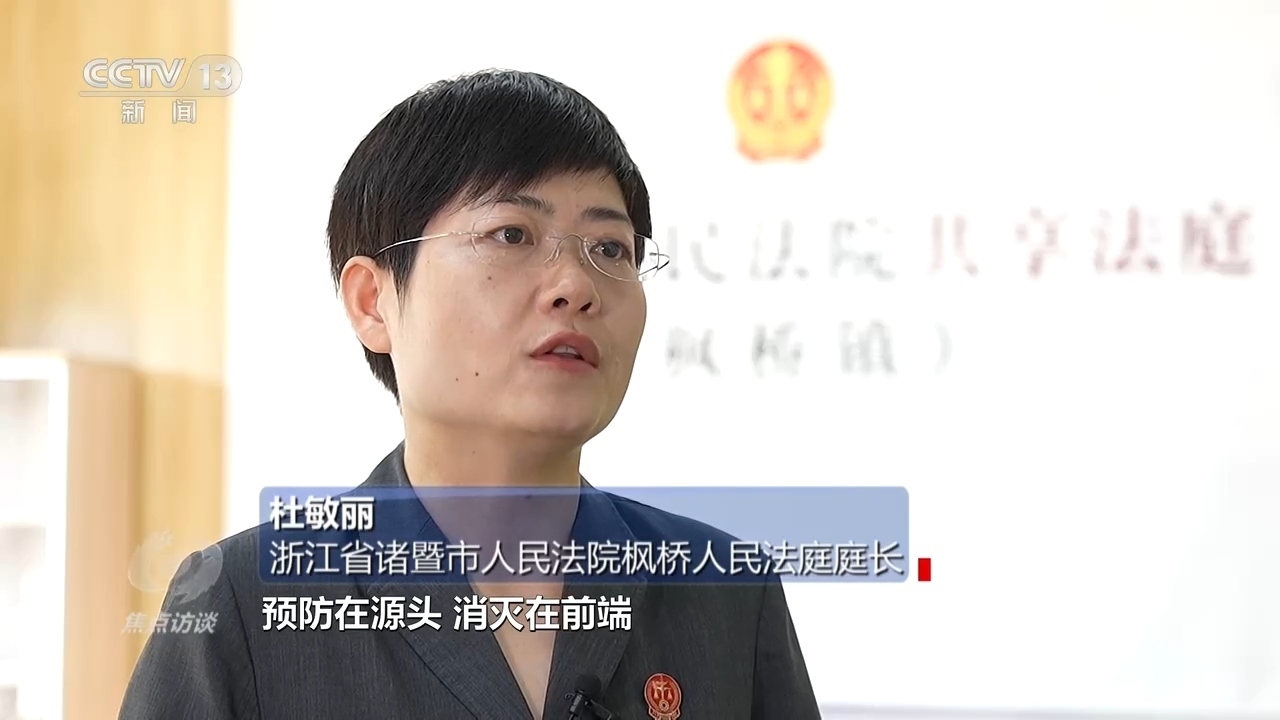 浙江省諸暨市人民法院楓橋人民法庭庭長杜敏麗:“把后端力量移到了前端,把更多矛盾糾紛預(yù)防在源頭、消滅在前端,后面的訴訟相當(dāng)于案件量也慢慢減少?!?/p>