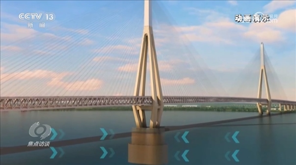 鄭清剛:“鐵路一側(cè)的荷載比公路一側(cè)要重8.6噸,就是每延米有8.6噸,就像兩個(gè)人抬東西,比如一頭重量大了的話,就會發(fā)生一頭高一頭低的情況。我們是通過一些結(jié)構(gòu)上的辦法,采用不同強(qiáng)度的斜拉索來匹配這個(gè)受力?!?/p>