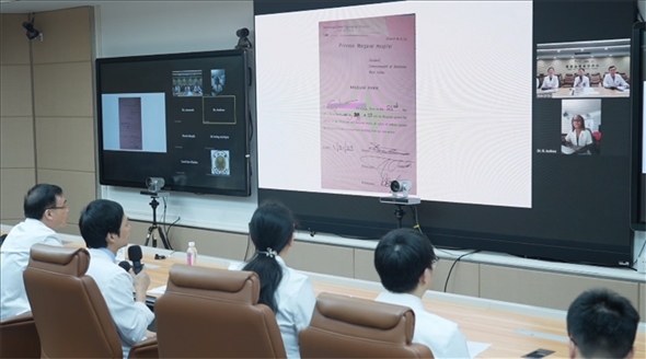 今年3月,吳德熙(左二)和同事與多米尼克開展遠程會診