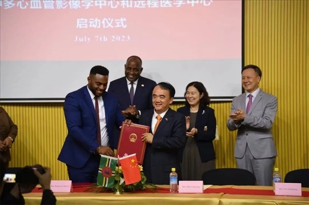 吳德熙半年可見的朋友圈里,唯一一條動態(tài)發(fā)自多米尼克。那是2023年7月7日,中國-多米尼克心血管影像學(xué)中心和遠程醫(yī)學(xué)中心成立的日子。為了這個了不起的時刻,時隔大半年,他再次跨過半個地球,登上這座小島。
