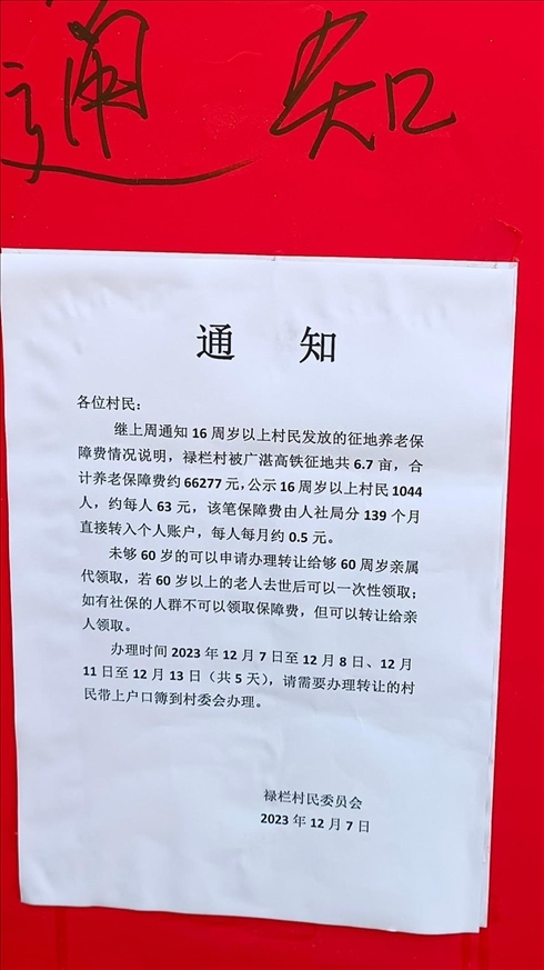 ·廣東一村發(fā)征地養(yǎng)老保障費每人每月0.5元?村委會回應稱錢少人多。