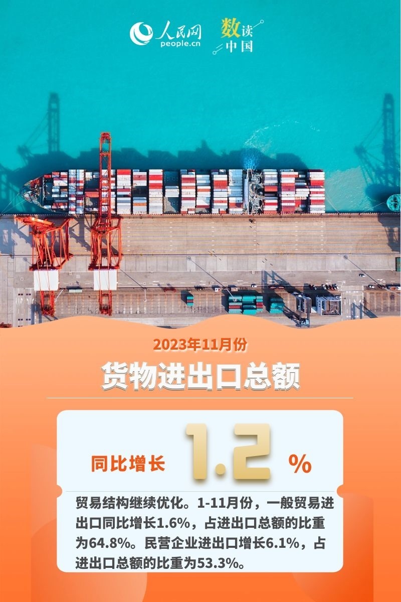 國家統(tǒng)計局15日發(fā)布數(shù)據(jù)顯示,11月份,我國工業(yè)、服務業(yè)、消費、出口等主要生產(chǎn)需求指標穩(wěn)中有升,就業(yè)物價總體穩(wěn)定,創(chuàng)新動能繼續(xù)成長,高質量發(fā)展扎實推進,國民經(jīng)濟總體延續(xù)回升向好的態(tài)勢。