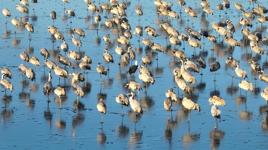 “12月初開始,鶴群陸續(xù)飛臨衡水湖。目前正處于候鳥越冬期,已有60余種、5萬余只候鳥飛到衡水湖越冬?!焙馑?guó)家級(jí)自然保護(hù)區(qū)資源保護(hù)局濕地生態(tài)監(jiān)測(cè)科科長(zhǎng)張余廣說。
