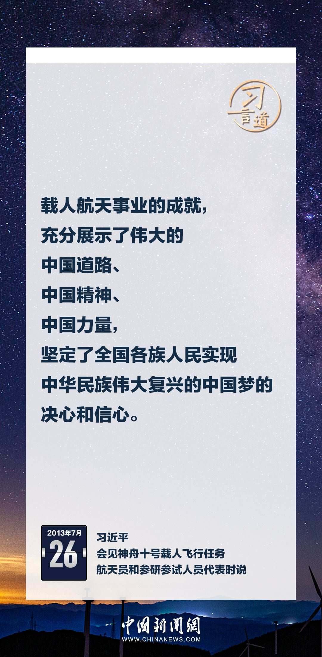 建設航天強國要靠一代代人接續(xù)奮斗。在不同場合,習近平總書記頻頻提及航天精神,激勵一代代中國人不斷奮進、筑夢太空。