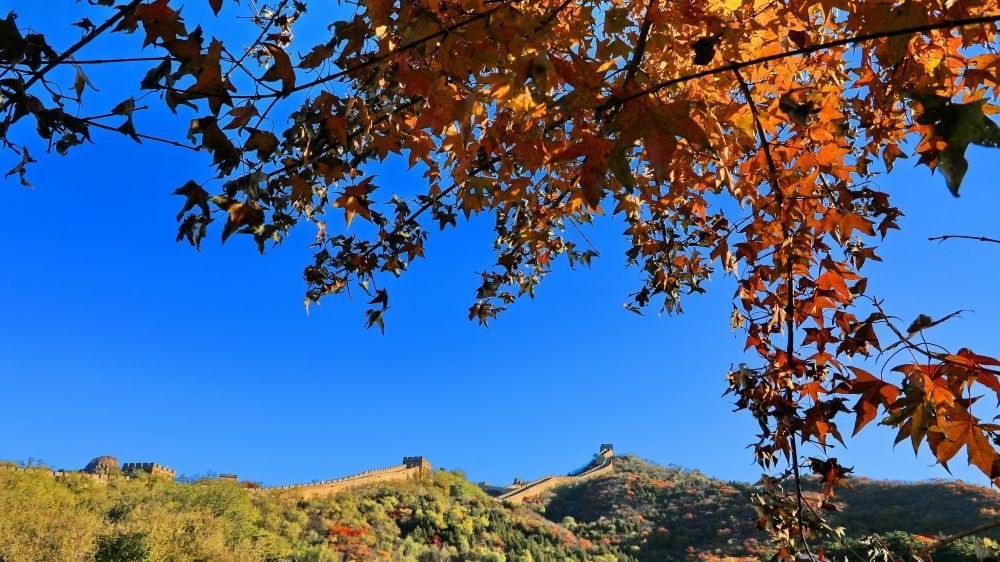 北京八達(dá)嶺長城秋色(2021年10月27日攝)。