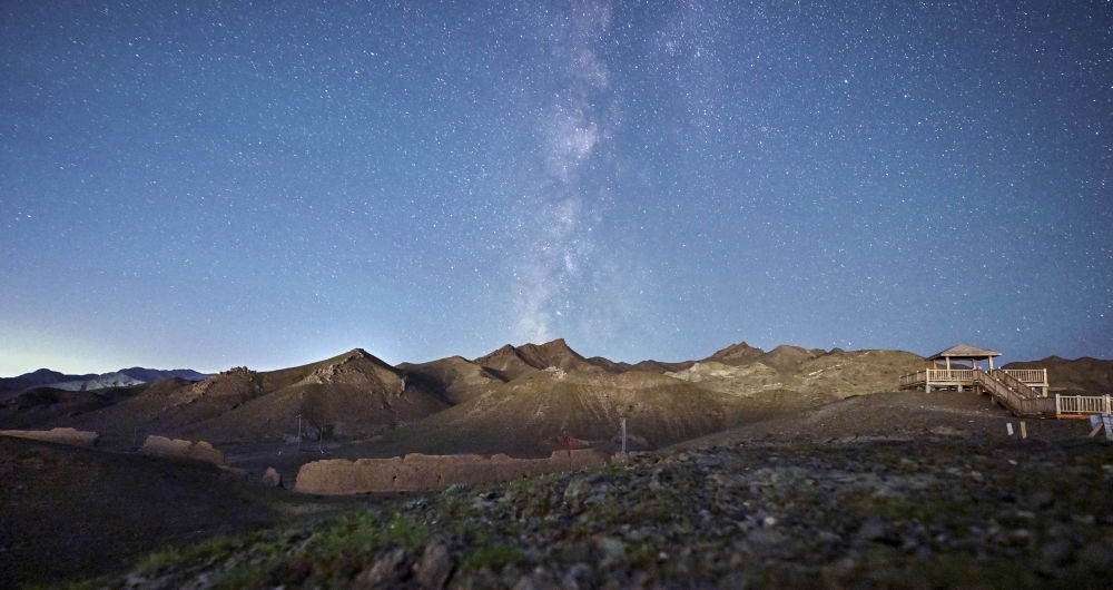 星空下的赤木口長城(2023年8月21日長時間曝光拍攝)。